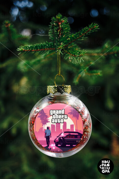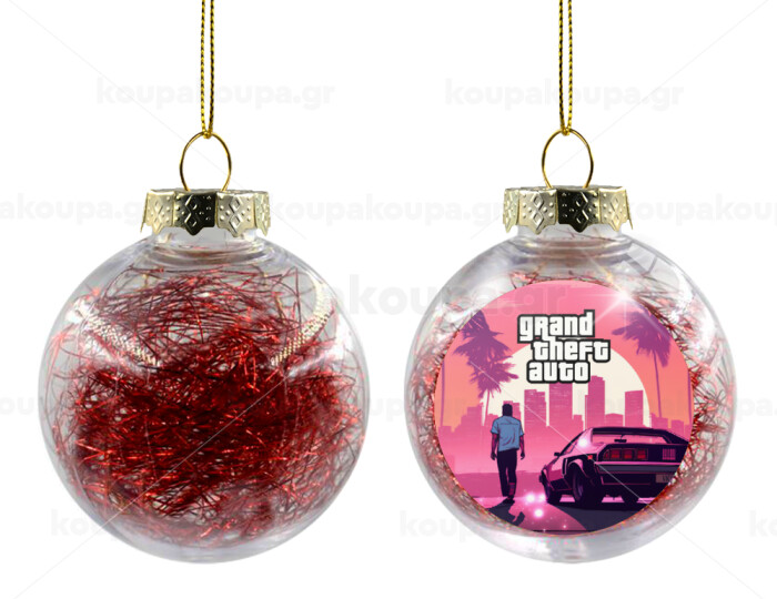 GTA (grand theft auto), Στολίδι Χριστουγεννιάτικη μπάλα δένδρου διάφανη με κόκκινο γέμισμα 8cm