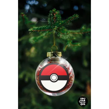 Pokemon ball, Στολίδι Χριστουγεννιάτικη μπάλα δένδρου διάφανη με κόκκινο γέμισμα 8cm