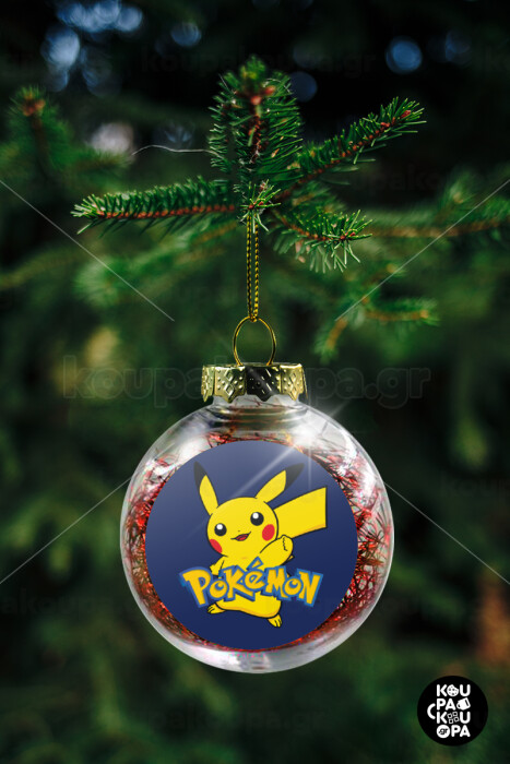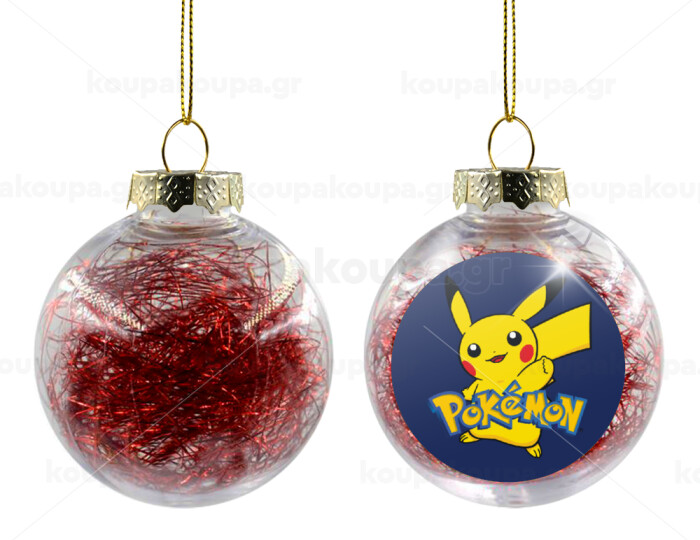 Pokemon pikachu, Στολίδι Χριστουγεννιάτικη μπάλα δένδρου διάφανη με κόκκινο γέμισμα 8cm
