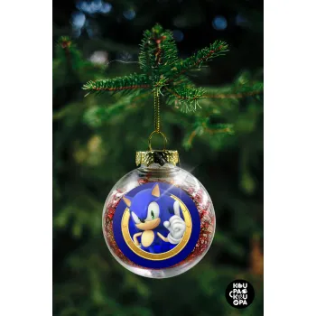 Sonic the hedgehog, Στολίδι Χριστουγεννιάτικη μπάλα δένδρου διάφανη με κόκκινο γέμισμα 8cm