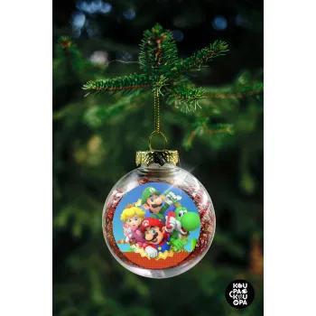 Super mario and Friends, Στολίδι Χριστουγεννιάτικη μπάλα δένδρου διάφανη με κόκκινο γέμισμα 8cm