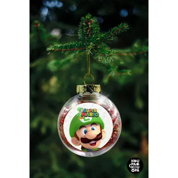 Super mario Luigi, Στολίδι Χριστουγεννιάτικη μπάλα δένδρου διάφανη με κόκκινο γέμισμα 8cm