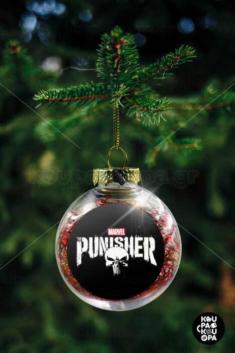 The punisher, Στολίδι Χριστουγεννιάτικη μπάλα δένδρου διάφανη με κόκκινο γέμισμα 8cm