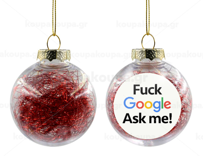 Fuck Google, Ask me!, Στολίδι Χριστουγεννιάτικη μπάλα δένδρου διάφανη με κόκκινο γέμισμα 8cm