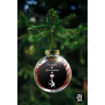 Google + Stack overflow + Coffee, Στολίδι Χριστουγεννιάτικη μπάλα δένδρου διάφανη με κόκκινο γέμισμα 8cm