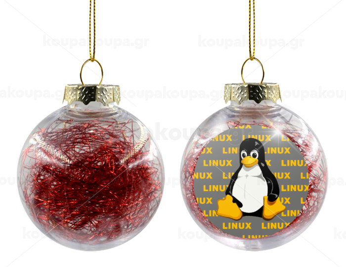Linux, Στολίδι Χριστουγεννιάτικη μπάλα δένδρου διάφανη με κόκκινο γέμισμα 8cm