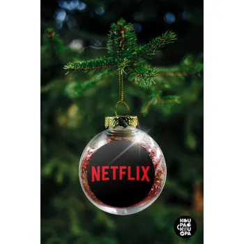 Netflix, Στολίδι Χριστουγεννιάτικη μπάλα δένδρου διάφανη με κόκκινο γέμισμα 8cm