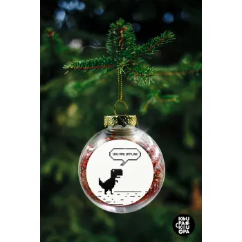 You are offline dinosaur, Στολίδι Χριστουγεννιάτικη μπάλα δένδρου διάφανη με κόκκινο γέμισμα 8cm