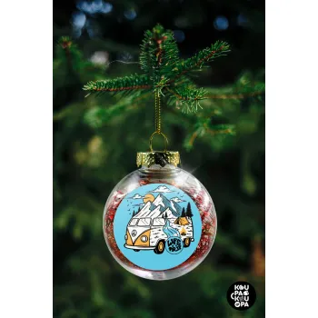 Life is a trip, Στολίδι Χριστουγεννιάτικη μπάλα δένδρου διάφανη με κόκκινο γέμισμα 8cm