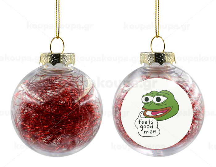 Pepe the frog, Στολίδι Χριστουγεννιάτικη μπάλα δένδρου διάφανη με κόκκινο γέμισμα 8cm