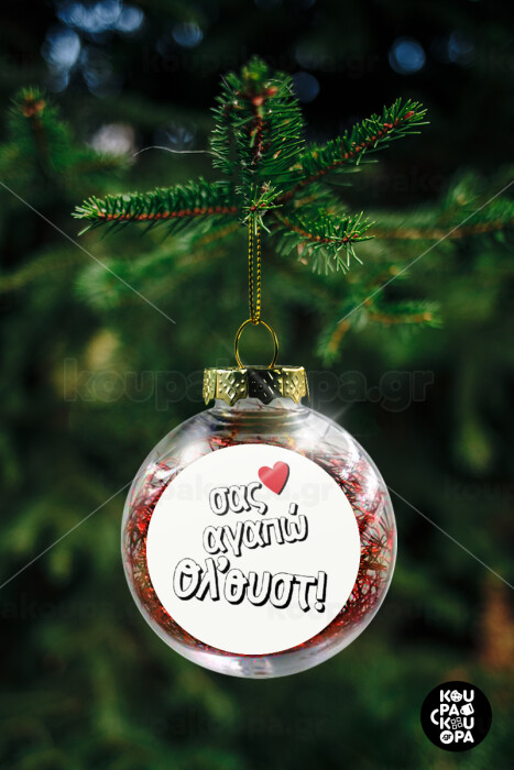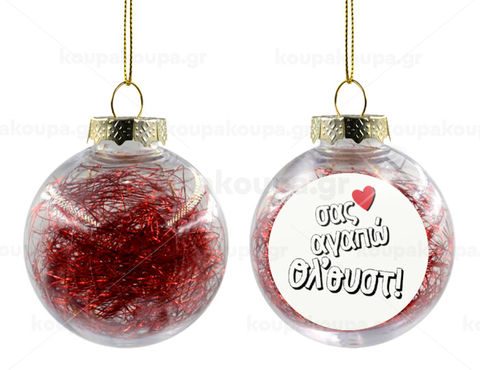 Σας αγαπώ όλ'ουστ!, Στολίδι Χριστουγεννιάτικη μπάλα δένδρου διάφανη με κόκκινο γέμισμα 8cm