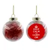 KEEP CALM  and carry on, Στολίδι Χριστουγεννιάτικη μπάλα δένδρου διάφανη με κόκκινο γέμισμα 8cm
