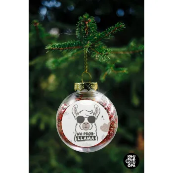 No Prob Llama, Στολίδι Χριστουγεννιάτικη μπάλα δένδρου διάφανη με κόκκινο γέμισμα 8cm