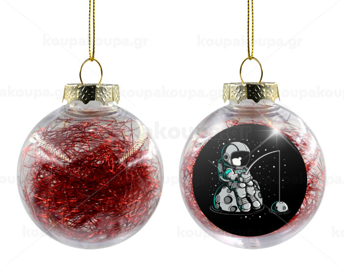 Αστροναύτης ψαρεύει στο διάστημα, Στολίδι Χριστουγεννιάτικη μπάλα δένδρου διάφανη με κόκκινο γέμισμα 8cm