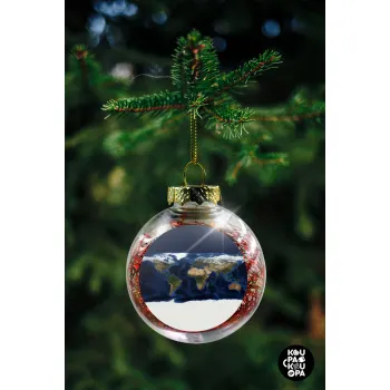 Earth map, Στολίδι Χριστουγεννιάτικη μπάλα δένδρου διάφανη με κόκκινο γέμισμα 8cm
