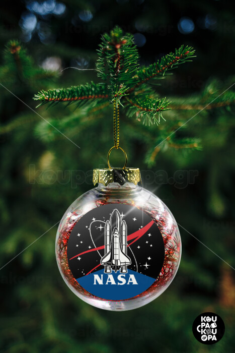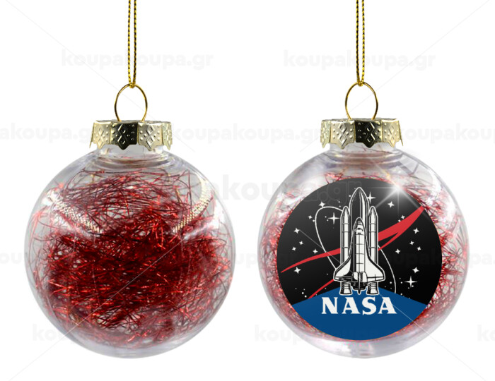 NASA Badge, Στολίδι Χριστουγεννιάτικη μπάλα δένδρου διάφανη με κόκκινο γέμισμα 8cm