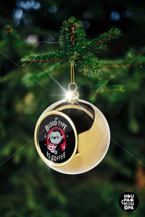 My blood type is coffee, Στολίδι Χριστουγεννιάτικη μπάλα δένδρου Χρυσή 8cm