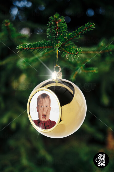 Μόνος στο σπίτι Kevin McCallister Shocked, Στολίδι Χριστουγεννιάτικη μπάλα δένδρου Χρυσή 8cm