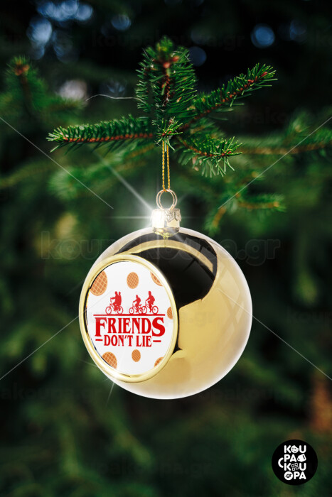 Friends Don't Lie, Stranger Things, Στολίδι Χριστουγεννιάτικη μπάλα δένδρου Χρυσή 8cm