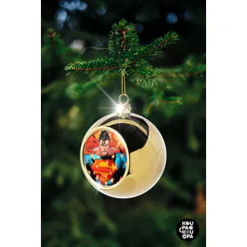 Superman angry, Στολίδι Χριστουγεννιάτικη μπάλα δένδρου Χρυσή 8cm