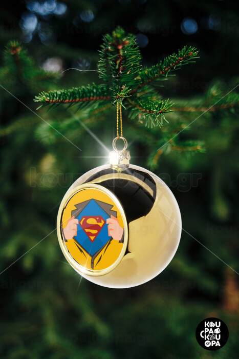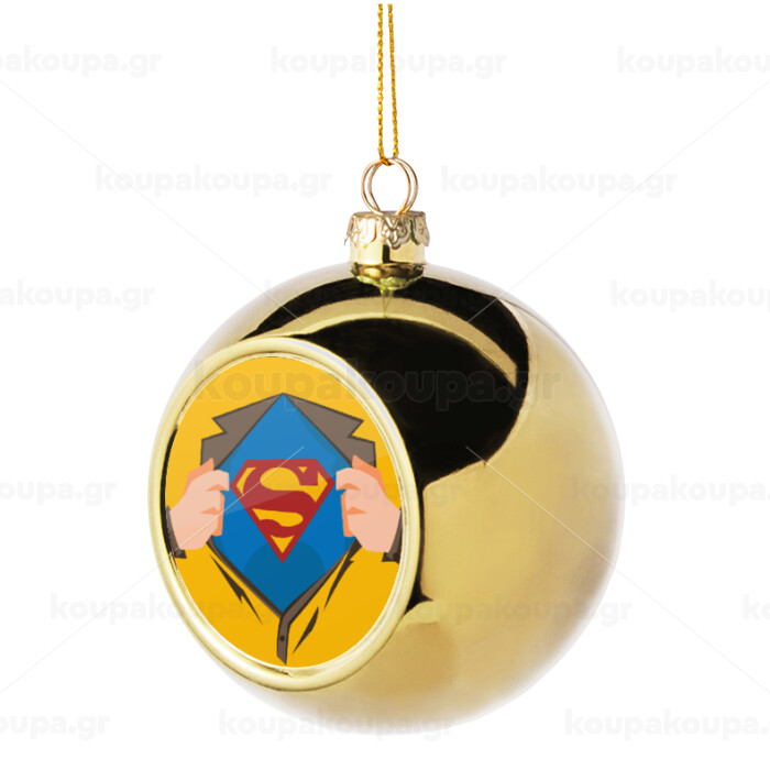 Superman hands, Στολίδι Χριστουγεννιάτικη μπάλα δένδρου Χρυσή 8cm