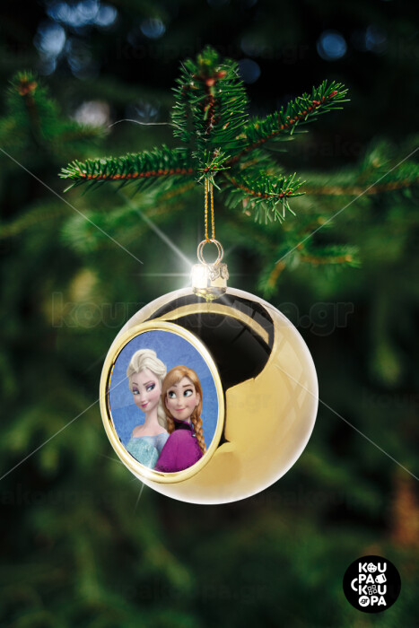 Ψυχρά κι ανάποδα Έλσα και Άννα, Στολίδι Χριστουγεννιάτικη μπάλα δένδρου Χρυσή 8cm
