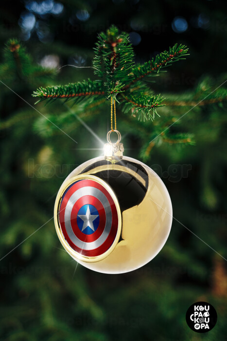 Captain America, Στολίδι Χριστουγεννιάτικη μπάλα δένδρου Χρυσή 8cm