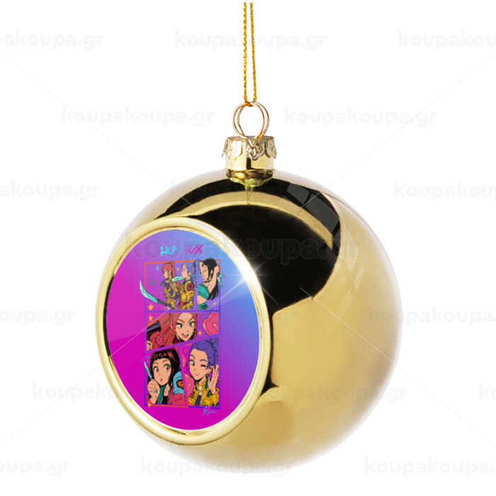Huntrix Kpop Girls, Στολίδι Χριστουγεννιάτικη μπάλα δένδρου Χρυσή 8cm