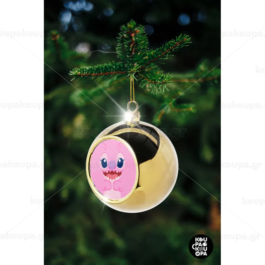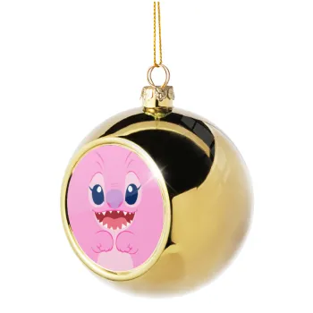Lilo & Stitch Angel pink, Στολίδι Χριστουγεννιάτικη μπάλα δένδρου Χρυσή 8cm