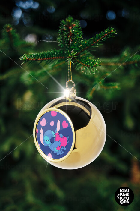 Lilo & Stitch hugs and hearts, Στολίδι Χριστουγεννιάτικη μπάλα δένδρου Χρυσή 8cm