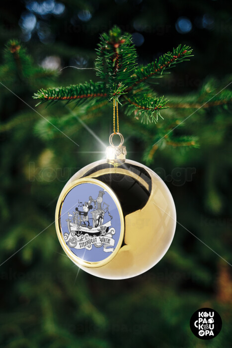 Mickey steamboat, Στολίδι Χριστουγεννιάτικη μπάλα δένδρου Χρυσή 8cm