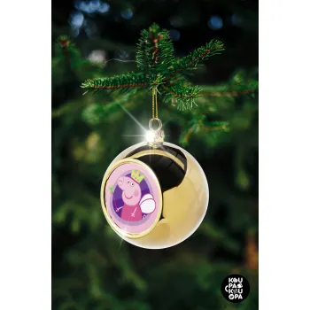 Peppa pig Queen, Στολίδι Χριστουγεννιάτικη μπάλα δένδρου Χρυσή 8cm