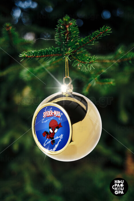Spiderman kid, Στολίδι Χριστουγεννιάτικη μπάλα δένδρου Χρυσή 8cm