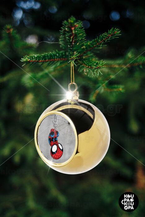 Spiderman kid, Στολίδι Χριστουγεννιάτικη μπάλα δένδρου Χρυσή 8cm
