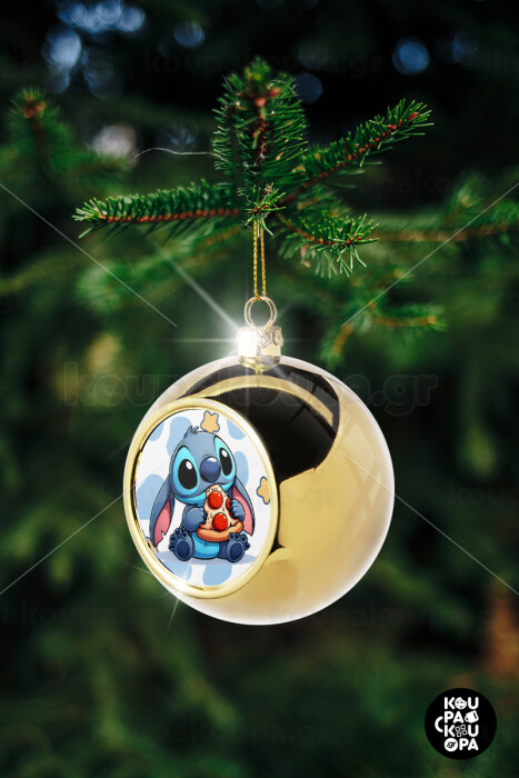 Stitch Pizza, Στολίδι Χριστουγεννιάτικη μπάλα δένδρου Χρυσή 8cm