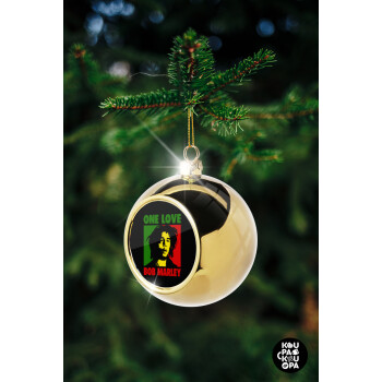 Bob marley, one love, Στολίδι Χριστουγεννιάτικη μπάλα δένδρου Χρυσή 8cm