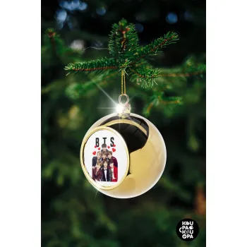 BTS hearts, Στολίδι Χριστουγεννιάτικη μπάλα δένδρου Χρυσή 8cm