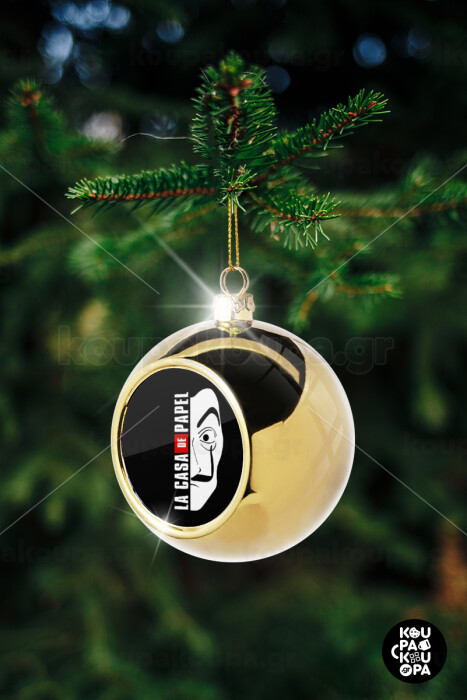 La casa de papel vertical, Στολίδι Χριστουγεννιάτικη μπάλα δένδρου Χρυσή 8cm