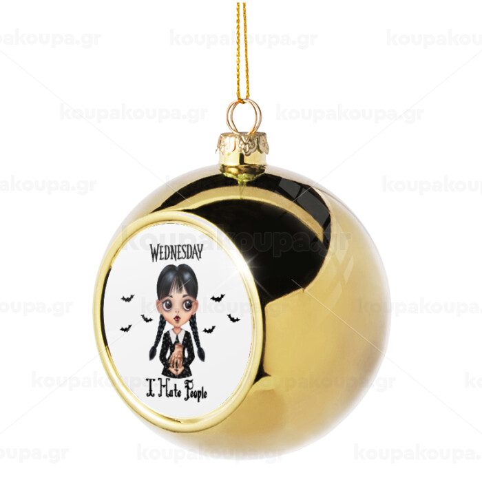 Wednesday Adams, i hate people, Στολίδι Χριστουγεννιάτικη μπάλα δένδρου Χρυσή 8cm