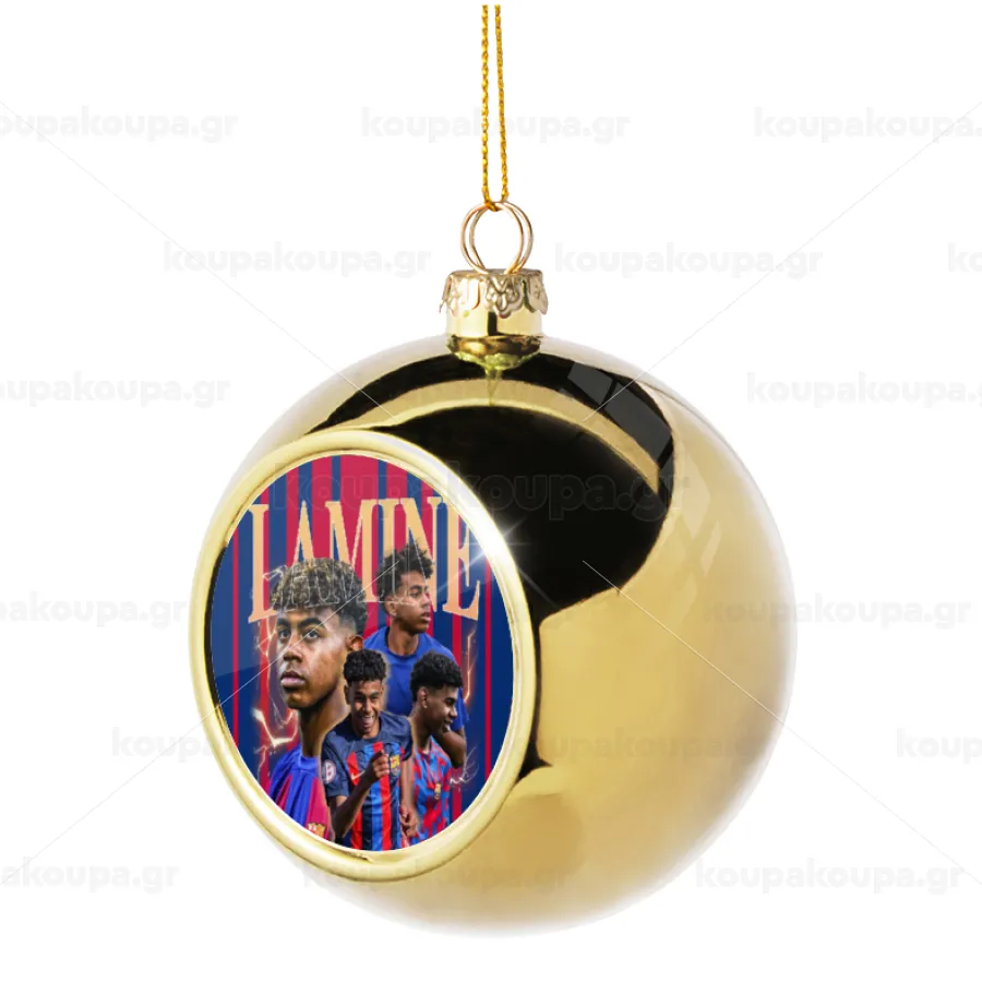 lamine yamal FCB, Στολίδι Χριστουγεννιάτικη μπάλα δένδρου Χρυσή 8cm