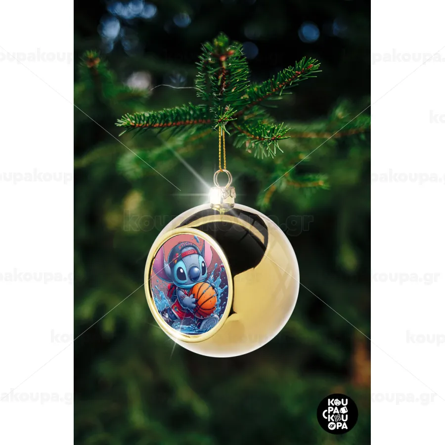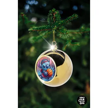 Stitch Basketball, Στολίδι Χριστουγεννιάτικη μπάλα δένδρου Χρυσή 8cm
