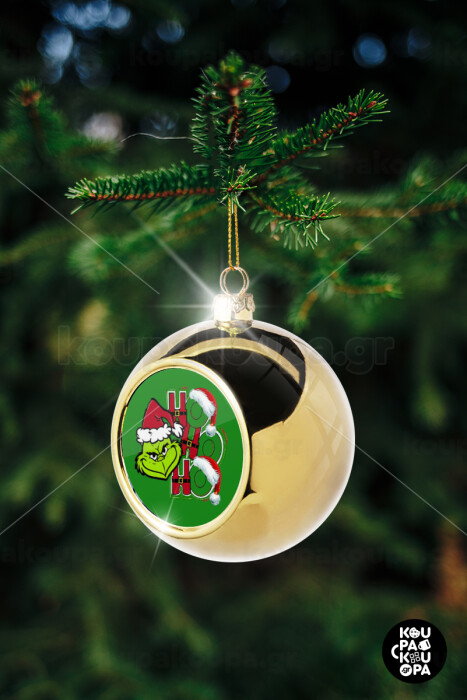 Grinch ho ho ho, Στολίδι Χριστουγεννιάτικη μπάλα δένδρου Χρυσή 8cm