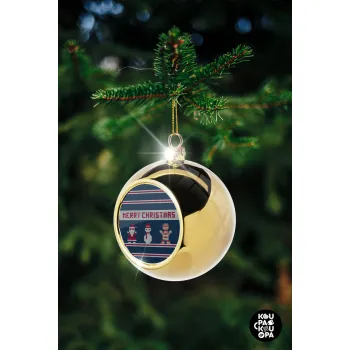 Merry christmas knitted, Στολίδι Χριστουγεννιάτικη μπάλα δένδρου Χρυσή 8cm