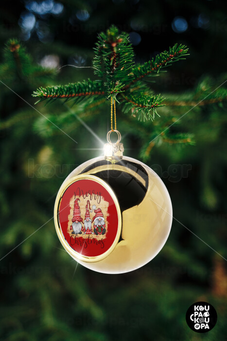 Christmas nordic gnomes, Στολίδι Χριστουγεννιάτικη μπάλα δένδρου Χρυσή 8cm