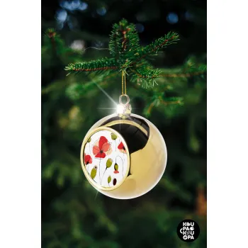Red poppy flowers papaver, Στολίδι Χριστουγεννιάτικη μπάλα δένδρου Χρυσή 8cm