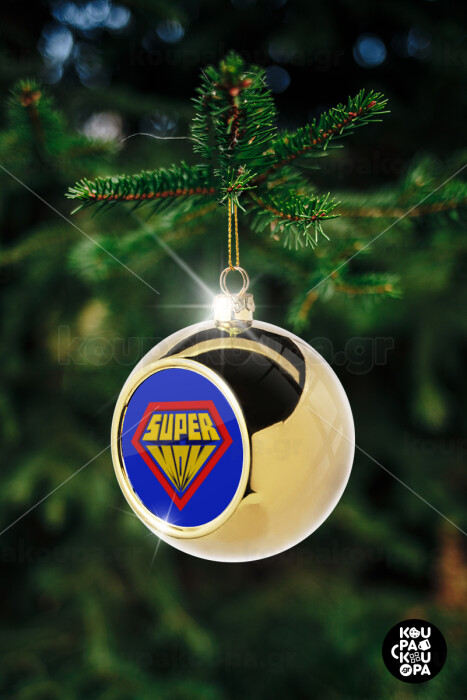 Super mom, Στολίδι Χριστουγεννιάτικη μπάλα δένδρου Χρυσή 8cm