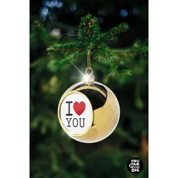 I ❤️ U, Στολίδι Χριστουγεννιάτικη μπάλα δένδρου Χρυσή 8cm