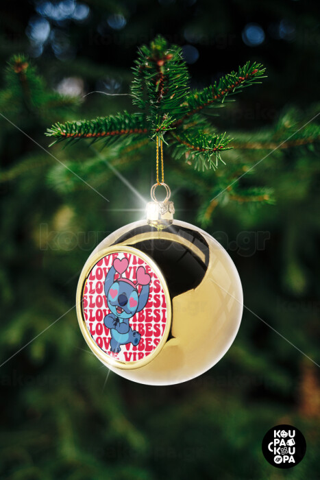 Lilo & Stitch Love vibes, Στολίδι Χριστουγεννιάτικη μπάλα δένδρου Χρυσή 8cm