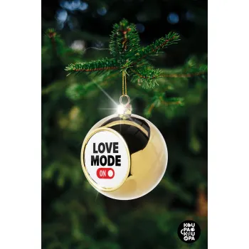 LOVE MODE ON, Στολίδι Χριστουγεννιάτικη μπάλα δένδρου Χρυσή 8cm