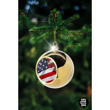 USA flag, Στολίδι Χριστουγεννιάτικη μπάλα δένδρου Χρυσή 8cm
